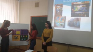 Студенти 4 курсу спеціальності 012 Дошкільна освіта за освітньою програмою Дошкільна освіта перебували на виробничій практиці у групах дошкільного віку (4-7 років). Звітуючи про виконання завдань практики, четвертокурсники визнавали труднощі, які виникали під час підготовки і проведення залікових форм роботи, з’ясовували причини, що їх викликали та шляхи усунення. Разом із тим, захоплено розповідали про успіхи та плідну співпрацю з вихователями, взаємодію з дітьми та їхніми батьками, відвідування відкритих занять у педагогів, які проходитимуть у квітні чергову атестацію, що стало гарним прикладом для наслідування й спонукало до творчості. Заслуговують уваги вдало розроблені і цікаво презентовані результати виконання індивідуальних наукових і творчих завдань. Зокрема варто відзначити захист творчої моделі оздоровчо-розважального комплексу сучасного ЗДО, яку підготували Фокшек Марина, Маїк Зоряна, Коцюк Мар’яна; творчий проект «Садок майбутнього», у якому студенти Гарасим Ірина, Панчук Ліза та Шевченко Катерина втілили своє бачення теориторії, споруд, обладнання приватного ЗДО та організації педагогічного процесу в ньому. Акторські здібності, педагогічний хист і майстерність продемонстрували студентки Островська Зоряна, Макарчук Світлана, Головчак Любов, власноруч створивши ляльки-рукавички та розігравши українську народну казку «Колосок». Крім того, дівчата запропонували ідею економічно-творчого підходу до організації музично-театралізованої діяльності в ЗДО, головними принципами якої визнали: при найменших затратах – найбільший результат; щоб мати – потрібно працювати; допоможи собі сам; добре, коли думка свіжа, руки вмілі і підтримка поруч).