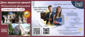 День відкритих дверей на педагогічному факультеті Кам’янець-Подільського національного університету імені Івана Огієнка відбудеться онлайн 13 лютого 2021 року об 11.00 на платформі Google meet
