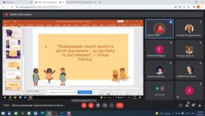 3 червня 2022 року на базі кафедри теорії та методик дошкільної освіти проведено звітну конференцію з навчальної педагогічної практики в закладах дошкільної освіти. Учасники конференції – здобувачі вищої освіти DО1-В20 групи та керівники практики від університету: Каньоса Н.Г., к.псих.н., доцент; Бабюк Т.Й., к.п.н., доцент; Гордійчук М.С., к.п.н., доцент; Галаманжук Л.Л., д.п.н., професор; Ватаманюк Г.П., к.п.н., ст. викл.; Пукас І.Л., к.п.н., ст. викл.; Демчик К.І., к.п.н., ст. викл. (кафедра теорії та методик дошкільної освіти); Панчук Н.П., к.псих. н., доцент; Дорофей С.В., к.псих. н., доцент; Столяренко О.Б. к.псих. н., доцент (кафедра психології освіти); Дутко О.М., к.п.н., доцент кафедри педагогіки та управління навчальним закладом.