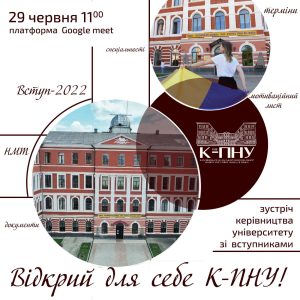 Запрошуємо вступників-2022 дізнатися більше про Кам’янець-Подільський національний університет імені Івана Огієнка на зустрічі «Відкрий для себе К-ПНУ», яка відбудеться 29 червня об 11:00.