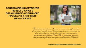 7 вересня 2023 року куратор, Ірина ГАЗІНА ознайомила студентів першого курсу з організацію освітнього процесу в Кам’янець-Подільському національному університеті імені Івана Огієнка.
