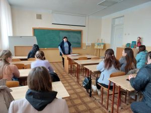 Галина ВАТАМАНЮК, провідний фахівець з практики спеціальності «Дошкільна освіта», провела зі здобувачами вищої освіти інструктаж з техніки безпеки, ознайомила з особливостями роботи в закладах дошкільної освіти у воєнний час.