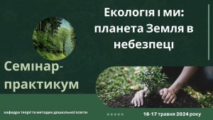 16-17 травня 2024 р. на базі Кам’янець-Подільського національного університету імені Івана Огієнка відбувся семінар-практикум: «Екологія і ми: Планета Земля в небезпеці». Його цільовою групою стали студенти спеціальності 012 Дошкільна освіта та викладачі кафедри теоріїї та методик дошкільної освіти, метою – підвищення екологічної свідомості, обговорення сучасних проблем довкілля та пошук варіанті їх вирішення.