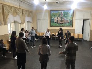 9 жовтня 2024 року здобувачі першого (бакалаврського) рівня вищої освіти спеціальності 012 Дошкільна освіта взяли участь у майстер-класі з акторського тренування, який проводила Людмила СУХАНОВА, керівник зразкової театр-студії «Мельпомена» Кам’янець-Подільського Центру дитячої та юнацької творчості (директор В.О. Ткачук). Участь у майстер-класі зумовлена вивченням майбутніми вихователями освітньої компоненти «Організація театралізованої діяльності в закладах дошкільної освіти» (викладач – Галина ВАТАМАНЮК, кандидат педагогічних наук, доцент), а саме теми практичного заняття «Акторське тренування: види, зміст, педагогічні умови».