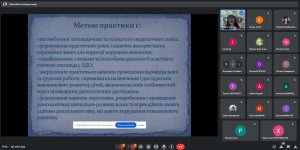Крім студентів, у нараді взяли участь доктор педагогічних наук, доцент, доцент кафедри логопедії і спеціальних методик Олена БЄЛОВА (керівник практики з фаху), методист заочного відділу педагогічного факультету Аліна КОЗАК, кандидат педагогічних наук, доцент, керівник практики зі спеціальності – Галина ВАТАМАНЮК.