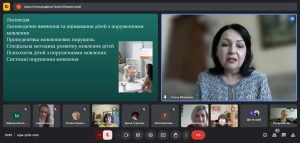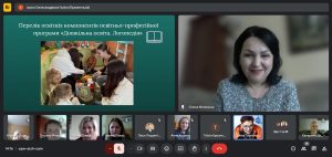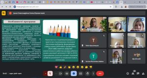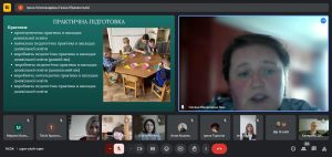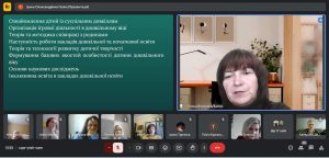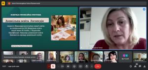 Освітньо-професійна програма Дошкільна освіта. Логопедія першого (бакалаврського) рівня вищої освіти за спеціальністю 012 Дошкільна освіта була представлена командою розробників. Гарант програми кандидат педагогічних наук, доцент, доцент кафедри теорії та методик дошкільної освіти К-ПНУ імені Івана Огієнка Ірина Газіна з використанням відео презентації ознайомила учасників онлайн зустрічі з основними положеннями, завданнями програми та акцентувала увагу на її унікальності та актуальності, зазначивши, що підготовка вихователів ЗДО, спроможних здійснювати фахову логопедичну роботу є особливо актуальним з огляду на вкрай складну ситуацію в Україні, яка склалася у результаті війни. Сьогодні величезна кількість дітей, переживши психологічні травми, потребують, зокрема й, логопедичної допомоги. Ось такі фахівці, які зможуть щодня працювати з такими дітьми, знаючи основи методики логопедичного впливу, надавати їм необхідну допомогу, є вкрай затребуваними. Доцент кафедри Тетяна Бабюк ознайомила присутніх зі структурно-логічною схемою реалізації освітнього процесу за ОПП та акцентувала увагу на переліку освітніх компонентів загального та професійного спрямування, а також окреслила можливості формування індивідуальної освітньої траєкторії здобувачів за рахунок дисциплін вільного вибору. Наталія Каньоса, кандидат психологічних наук, доцент, доцент кафедри теорії та методик дошкільної освіти проінформувала колег щодо реалізації програми академічної мобільності, в рамках якої здобувачі освіти з Університету Огієнка проходили навчання в ЗВО-партнерах Ніжина, Чернівців та Чернігова). Іванна Пукас, кандидат педагогічних наук, доцент, старший викладач кафедри теорії та методик дошкільної освіти зосередилася на питаннях академічної доброчесності та методів її гарантування в К-ПНУ імені Івана Огієнка. Катерина Демчик, старший викладач кафедри теорії та методик дошкільної освіти охарактеризувала рейтингову систему оцінювання навчальних досягнень здобувачів вищої освіти, зауваживши, що система оцінювання будується на умовах академічної доброчесності та прозорості. Характеристику блоку логопедичних дисциплін (перелік ОК, зміст, обсяги) здійснила Олена Мілевська, кандидат педагогічних наук, доцент, доцент кафедри логопедії та спеціальних методик К-ПНУ імені Івана Огієнка. Питання практичної підготовки майбутніх фахівців за ОПП висвітлили Галина Ватаманюк, доцент, старший викладач кафедри теорії та методик дошкільної освіти та Оксана Ткач, кандидат педагогічних наук, старший викладач кафедри логопедії та спеціальних методик.
