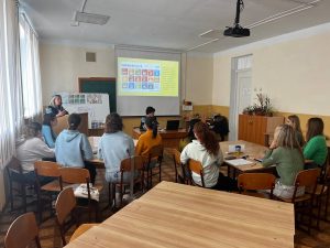 8 листопада, у якості логічного завершення і систематизації раніше вивчених матеріалів з навчальної дисципліни «Ознайомлення дітей із суспільним довкіллям» проведено бінарне практичне заняття для студентів 2 курсу першого (бакалаврського) рівня вищої освіти спеціальності 012 Дошкільна освіта на тему «Ознайомлення дітей із суспільним довкіллям крізь призму освіти сталого розвитку». Бінарність подання і закріплення матеріалу з теми забезпечували Галина ВАТАМАНЮК, кандидат педагогічних наук, доцент, старший викладач кафедри теорії та методик дошкільної освіти та вихователі вищої категорії ЗДО №20 «Дзвіночок» Кам’янець-Подільської міської ради Тетяна КОВАЛЧУК та Тетяна Денисенко.