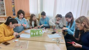 До заняття студенти підготували комікси до цілей сталого розвитку (за сферами – екологія, економіка, соціум), виготовили вироби різного призначення із покидькових матеріалів, переглянули запропоновані у плані практичного заняття відеоматеріали, опрацювали теоретичний матеріал. Закріплення теоретичних знань і набутого досвіду відбувалося у формі інтерактивного навчання такого змісту: логотип команд (за сферами сталого розвитку), презентація-захист коміксів, презентація виробів із покидькових матеріалів, виконання вправ: мікрофон «Що я буду робити, щоб…» (світ став добрішим, чистішим, багатшим); «Цілі сталого розвитку» (відношення цілей до кожної із сфер); «Суспільне довкілля і сталий розвиток у казці», «Встановлення зв’язків»; «Ярмарок ідей»; «інтелектуальний батл» за змістом навчальної дисципліни «Ознайомлення дітей із суспільним довкіллям».