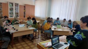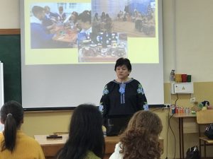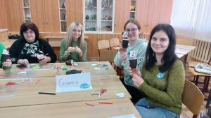 Педагоги-практики поділилися досвідом роботи з впровадження освіти сталого розвитку в ЗДО за парціальною програмою Н. Гавриш, О. Пометун «Дошкільнятам – освіту сталого розвитку», продемонстрували фото і відео різних форм роботи з дітьми та батьками вихованців (майстер-класи, спільний відпочинок, волонтерські заходи, тематичні розваги, екскурсії, досліди з переробки паперу та вторинного його використання, подіум екокостюмів тощо.). Особливий інтерес до обраної професії і любов до дітей, як найменших членів суспільства майбутні педагоги проявили під час майстер-класу з виготовлення іграшки-подарунку з покидькових матеріалів для вихованців групи «Бджілка» ЗДО «Дзвіночок», у якій працюють педагоги-практики. До виготовленого кумедного котика чи песика було прикріплено сердечко, з написами: «З любов’ю Оленці від Поліни», «Матвійку від Наталії» тощо.
