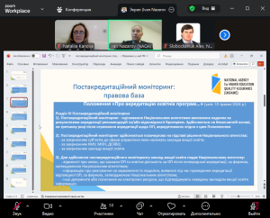 Спікером заходу виступив Іван Назаров, який детально окреслив особливості здійснення постакредитаційного моніторингу, ключові вимоги до подальшого супроводу освітніх програм та механізми підтвердження їх якості після проходження акредитації.
