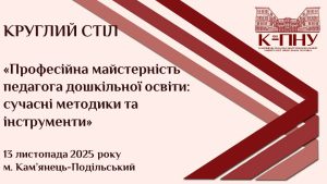 13 листопада 2025 року на кафедрі теорії та методик дошкільної освіти відбулося засідання круглого столу на тему «Професійна майстерність педагога дошкільної освіти: сучасні методики та інструменти».