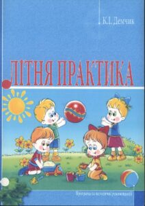 Літня практика. Методичні рекомендації / укладач Демчик К. І. Кам’янець-Подільський : видавець ПП Зволейко Д.Г., 2012. 32 с. Посібник містить програму літньої практики, яку проходять студенти ІІІ курсу напряму підготовки 6.010101 Дошкільна освіта; методичні рекомендації до виконання завдань практики, розписані за змістовими модулями, а також у додатках подані зразки оформлення звітної документації. Дана програма буде корисною студентам під час організації виховання та навчання дітей дошкільного віку у літній оздоровчий період.