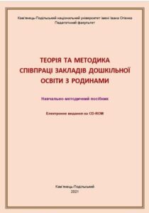 Теорія та методика співпраці закладів дошкільної освіти з родинами: нав-чально-методичний посібник. [Електронний ресурс] / авт.-упор. Н. Г. Каньоса, Т. Й. Бабюк. Кам’янець-Подільський: Кам’янець-Подільський національний університет імені Івана Огієнка, 2021. 1 електрон. опт. диск (CD-ROM); 12 см. 290 с. URI: http://elar.kpnu.edu.ua:8081/xmlui/handle/123456789/6382 Навчально-методичний посібник «Теорія та методика співпраці закладів дошкі-льної освіти з родинами» висвітлює особливості підготовки майбутніх вихователів за-кладів дошкільної освіти до здійснення співпраці з родинами вихованців, планування та проведення просвітницької роботи з батьками дітей дошкільного віку з питань ви-ховання та навчання дитини. У навчально-методичному посібнику вміщено теоретич-ний матеріал, завдання та питання для самостійної роботи, методичні рекомендації щодо самостійної роботи студентів, короткий термінологічний словник, список реко-мендованої літератури, короткий довідник. |