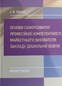 Пукас І.Л. Основи саморозвитку професійної компетентності майбутнього вихователя закладу дошкільної освіти: монографія. Київ: Вид-во «Центр учбової літератури», 2021. 134 с. URI: http://elar.kpnu.edu.ua:8081/xmlui/handle/123456789/6388 У монографії подаються результати досліджень у галузі дошкільної освіти, зокрема розглядаються особливості саморозвитку професійної компетентності майбутніх вихователів закладів дошкільної освіти у рамках їх теоретико-практичної підготовки. Порушуються проблеми модернізації змісту професійної підготовки фахівців ЗДО, технологічних особливостей його реалізації, що в цілому сприяє підготовці здобувачів освіти до здійснення успішної професійно-педагогічної діяльності в сучасних закладах дошкільної освіти. Монографію адресовано здобувачам вищої освіти педагогічних факультетів спеціальності 012 Дошкільна освіта, педагогам закладів дошкільної освіти та викладачам закладів вищої освіти педагогічних спеціальностей. |
