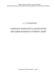 Галаманжук Л. Л. Оздоровчі технології та діагностичні методики фізичного розвитку дітей: навчально-методичний посібник. Кам’янець-Подільський: ТОВ “Друкарня “Рута”, 2019. 122 с. URI: http://elar.kpnu.edu.ua:8081/xmlui/handle/123456789/6955 У навчально-методичному посібнику розглянуто теоретичні аспекти та запропоновано практичні рекомендації, пов’язані з визначеними й апробованими дослідниками алгоритмами формування і реалізації технологій оздоровчої спрямованості, методик діагностики фізичного розвитку дітей у дошкільний період та під час навчання у початковій школі. Пропоновані розробки та рекомендації необхідні для підвищення ефективності фізичної активності дітей у закладах дошкільної освіти та початкової школи в аспекті успішного вирішення завдань, визначених для такої активності дітей. |