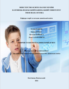 Цифрові технології в дошкільній освіті: навчально-методичний посібник [Електронний ресурс] / авт.-упор. Т.Й.Бабюк, І.Л.Пукас, Н.Г.Каньоса, Л.Л.Галаманжук. Кам’янець-Подільський : Видавець Ковальчук О.В., 2024. 122 с. URI: http://elar.kpnu.edu.ua/xmlui/handle/123456789/8215 Система сучасної дошкільної освіти потребує постійного впровадження інноваційних технологій в освітній процес. Саме цифрові технології покликані стати невід’ємною частиною цілісного освітнього процесу, значно підвищувати його ефективність. Цифрова компетентність сучасного педагога є однією з ключових вимог у контексті стрімкого розвитку технологій та цифровізації освіти. Вона охоплює не лише технічні навички, але й уміння використовувати Матеріали навчально-методичного посібника допоможуть ознайомитися із системою роботи з використання цифрових технологій у роботі з дітьми, батьками, педагогами, поглибити знання про форми роботи, спрямовані на розвиток цифрової-компетентності педагогів. Навчально-методичний посібник адресовано здобувачам вищої освіти зі спеціальності 012 Дошкільна освіта, педагогам закладів дошкільної освіти, викладачам закладів вищої освіти педагогічних спеціальностей. |