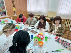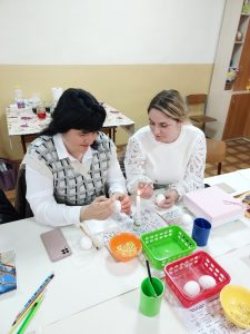 У рамках семінару проведено майстер-клас з писанкарства Демчик Катериною Іванівною, кандидатом педагогічних наук, старшим викладачем кафедри теорії та методик дошкільної освіти Кам’янець-Подільського національного університету імені Івана Огієнка. Катерина Іванівна розповіла присутнім про писанкарство, давні та сучасні узори, композицію, вибір яйця, природні та штучні барвники й багато інших цікавих моментів. «Кожна писанка, – наголосила Катерина Іванівна, – твориться з любов’ю. Не маючи доброго настрою, не маючи внутрішнього спокою, бажання добра ближньому, писанки не напишеш».